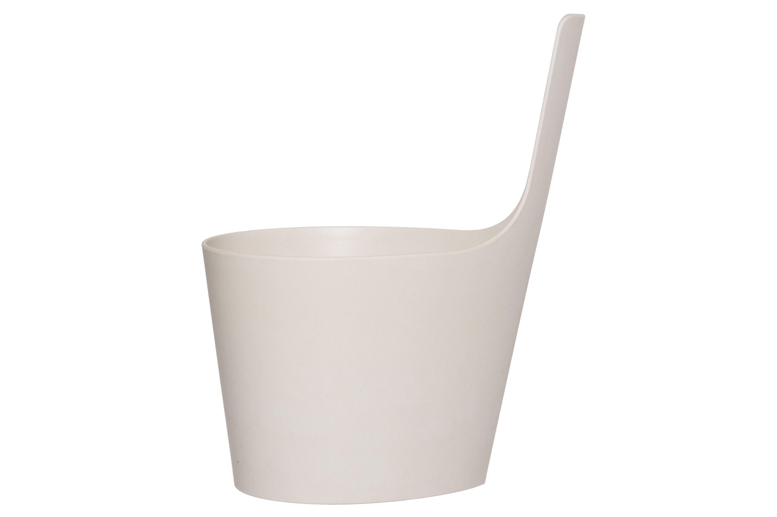 Beautifully drop shaped sauna bucket made of biocomposite in Finland. The clean lines and Scandinavian design of the Rento Pisara sauna products are purely the result of Finnish work. The Pisara products are manufactured from a completely Finnish biocomposite. The durable natural fibre composite is pleasant to the touch and an excellent choice of material for the heat and humidity of the sauna. Recyclable, can be converted into energy by burning. The material have been manufactured in Finland. Capacity 5 L.